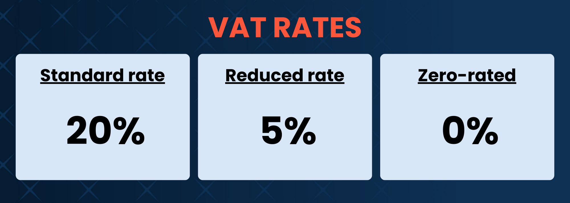 VAT isn’t a one-size-fits-all tax—different goods and services are taxed at different rates. Here’s a quick breakdown of the current VAT rates in the UK: